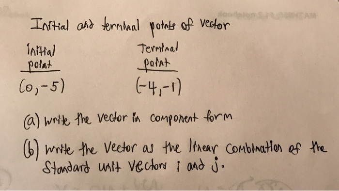 The initial and terminal points of a vector are given Initial point. To find the component form of a vector with initial and terminal points. Terminal Point P x y 11 Initial Point PQ A vector can be written as PQ or a.
